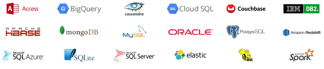 支持流行的数据库,如 SQL Server、MySQL、DB2、Mongo、Cassandra、Flat Files 等。