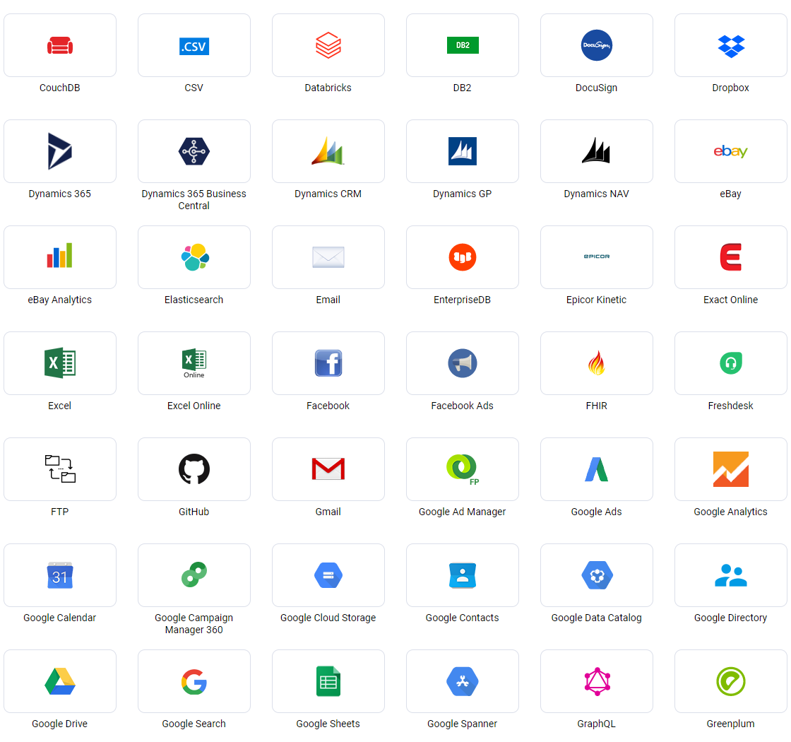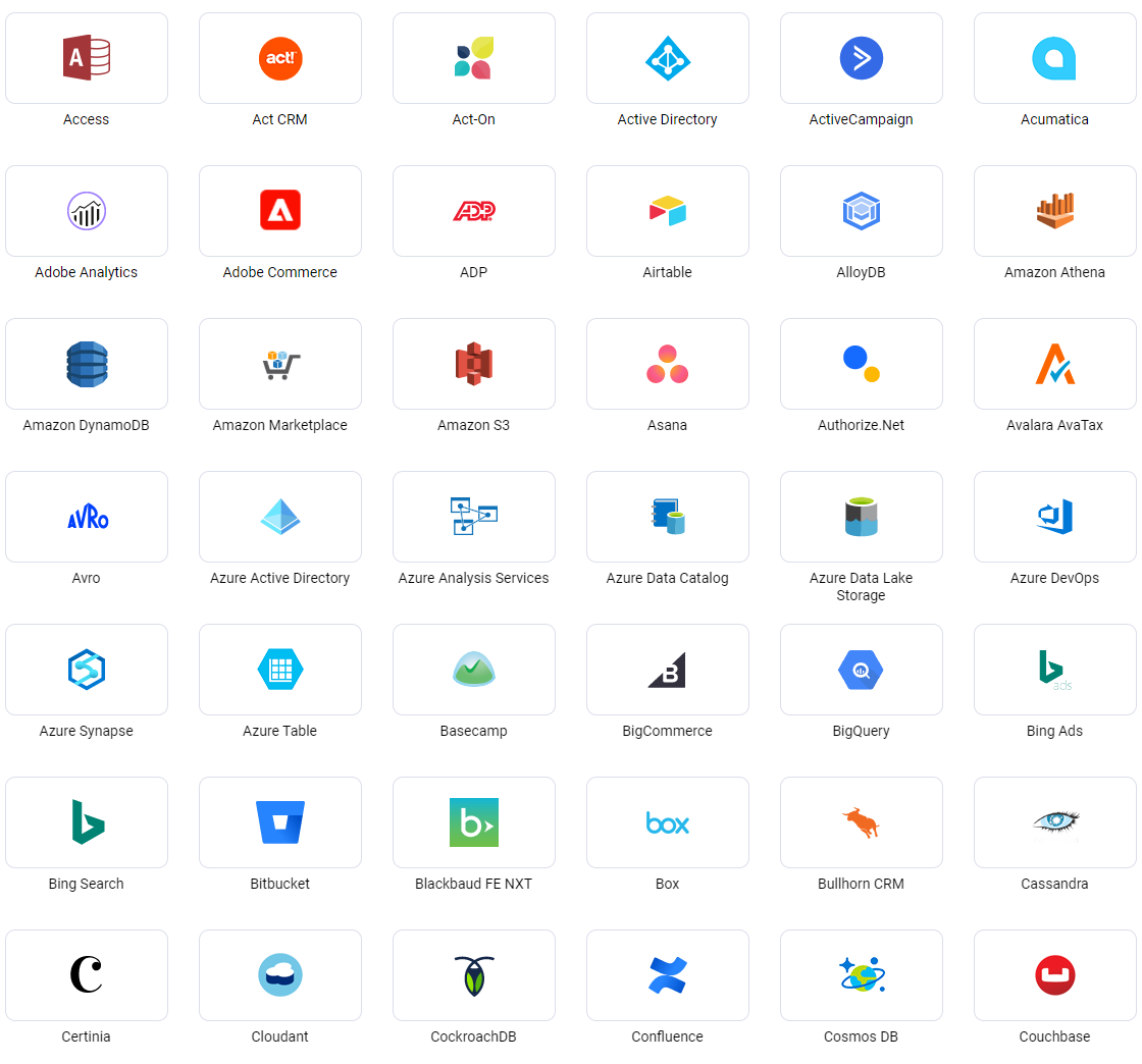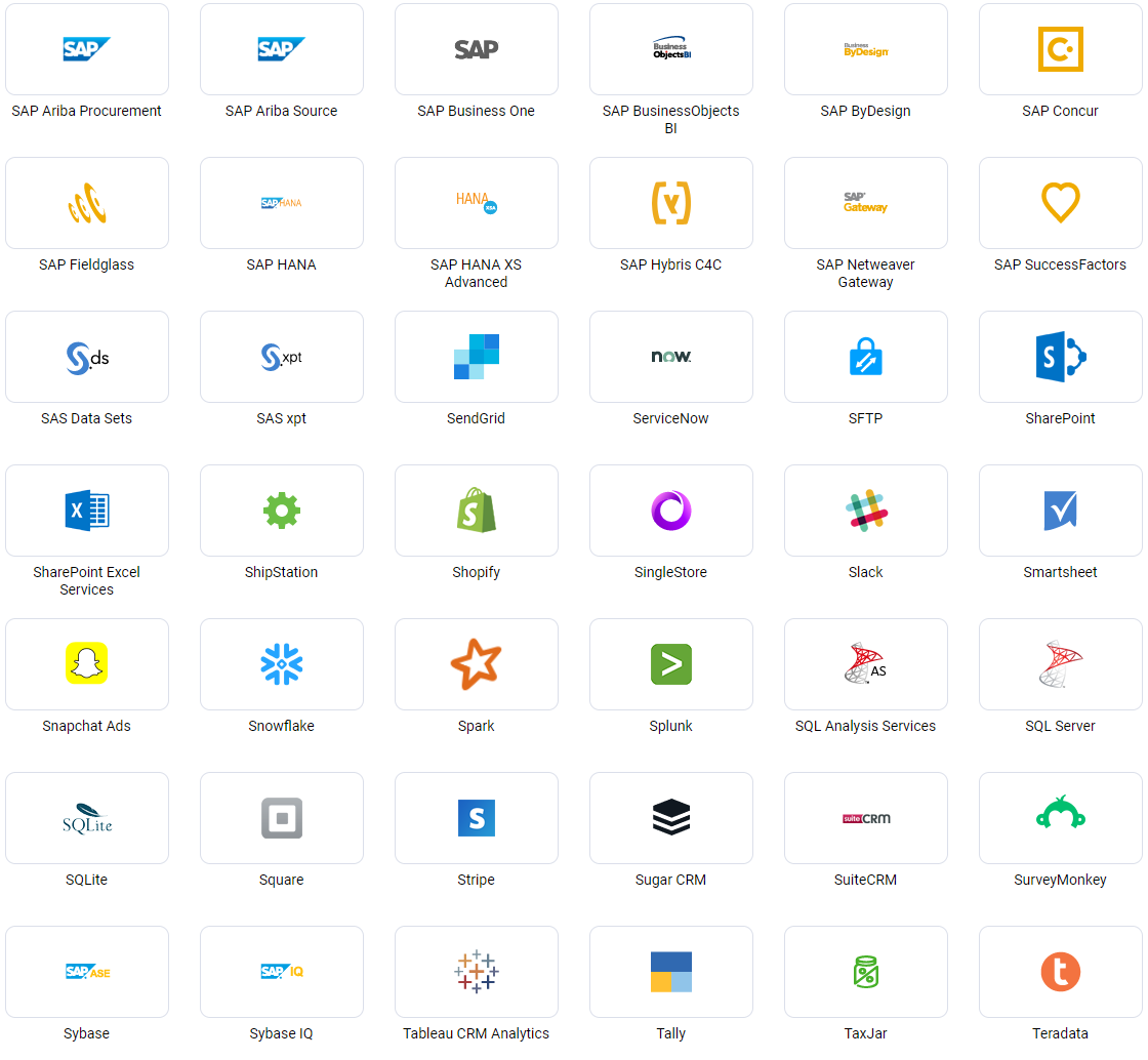 将 BI、分析、ETL 和报告连接到来自 200 多个应用程序、数据库和 Web API 的实时数据。