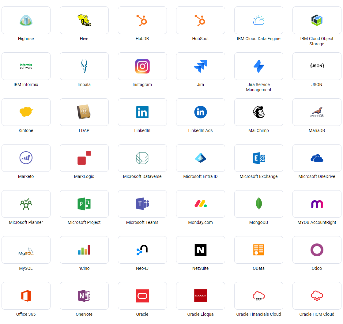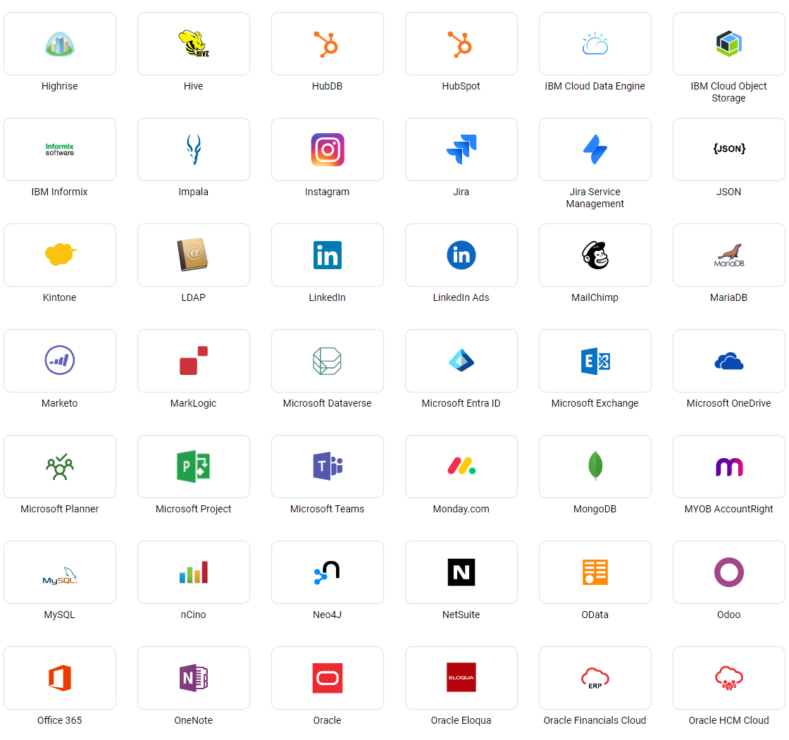 了解更多 →CData Software 是领先的数据访问和连接解决方案提供商。我们基于标准的连接器简化了数据访问,并使客户免于与本地或云数据库、SaaS、API、NoSQL 和大数据集成的复杂性。