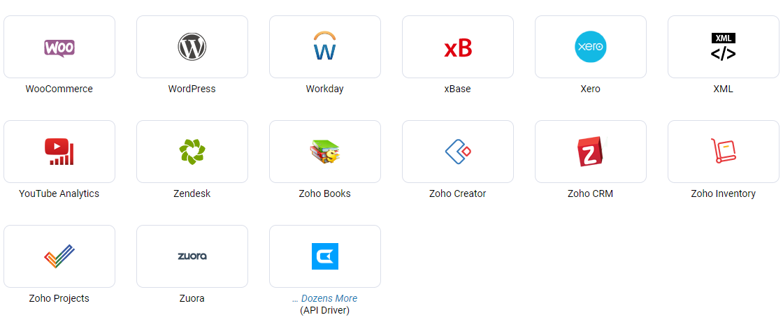 此处未列出您的应用程序?探索我们的驱动程序开发选项,了解我们如何帮助您使用自定义驱动程序为数据源启用 SQL。基于标准的驱动程序在您的数据和 BI 和分析领域之间架起了一座通用桥梁。让我们的团队向您展示如何做到这一点。
