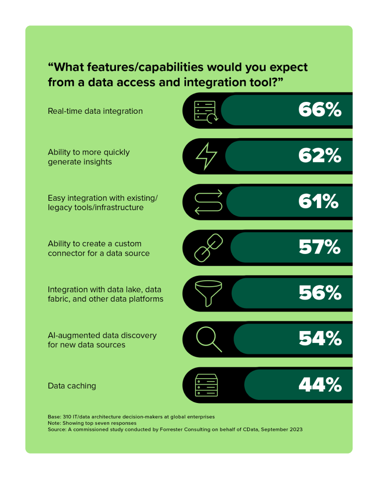 报告发现,合规性要求、与云工具相关的高成本以及跨云和本地环境管理数据是当今数据团队面临的最大数据架构挑战。IT 决策者正在寻找能够增强其现有数据集成工具的功能和可用性的解决方案,同时提供跨多个环境的及时数据访问。事实上,95% 的受访者同意,现代数据架构方法是成功且具有竞争力的 IT 战略的基础。