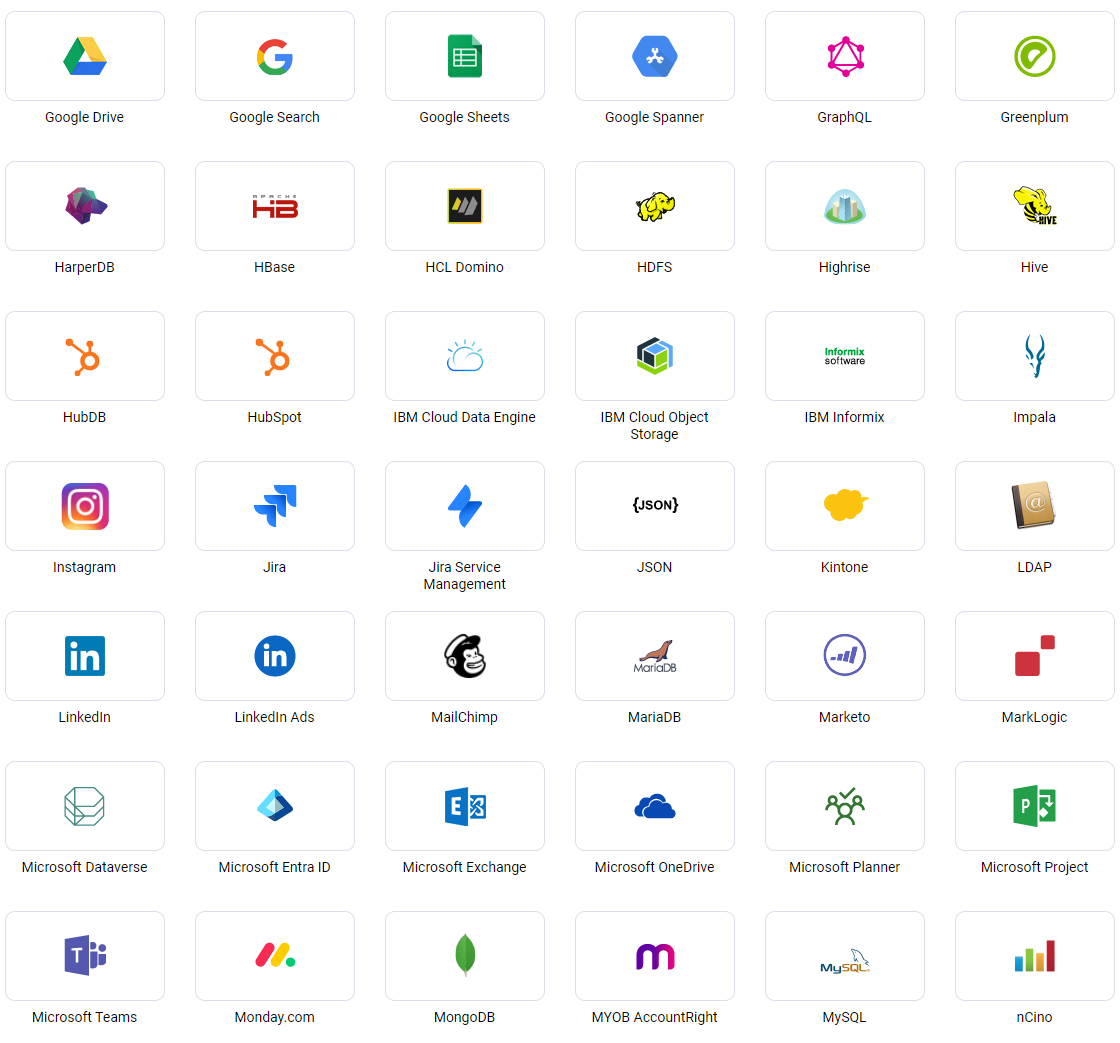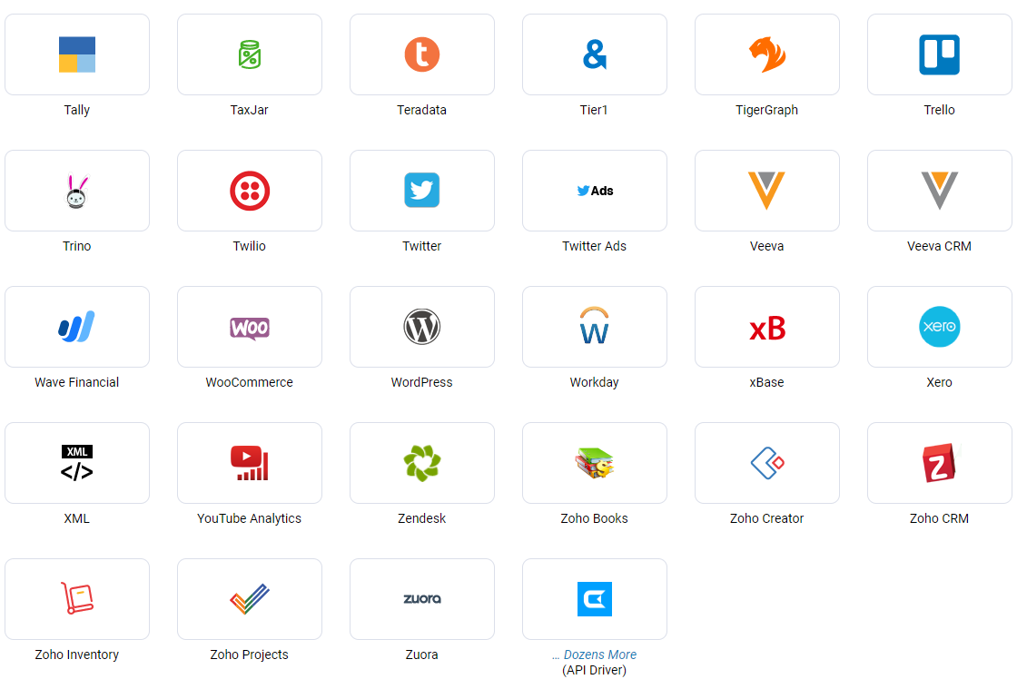 ODBC 是用于连接应用程序和数据的最广泛支持的接口之一。我们的驱动程序提供与流行工具的无缝和认证连接,包括: